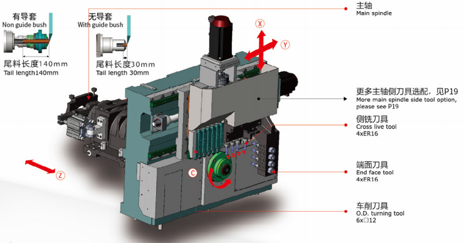●兼并走心和走刀(有导套模式和无导套模式)两种加工模式,切换简便。