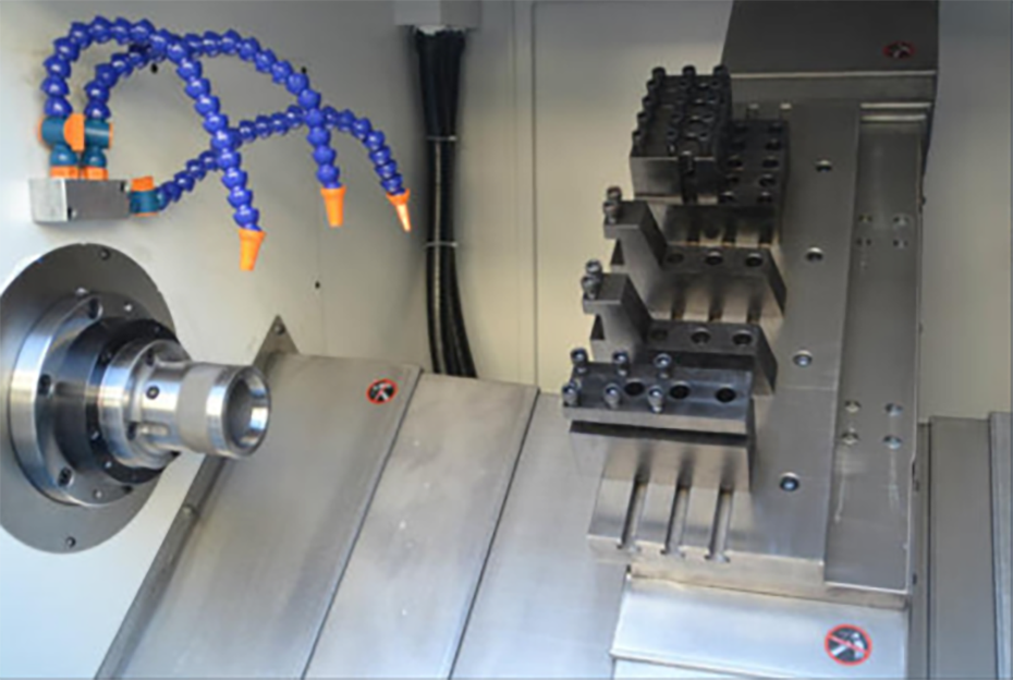 ●刀塔采用伺服马达驱动,可就近换刀,换刀速度快。刀塔锁紧为油压锁定,锁紧力強,刀塔稳定性高,实现刀塔高刚性及高精度特点